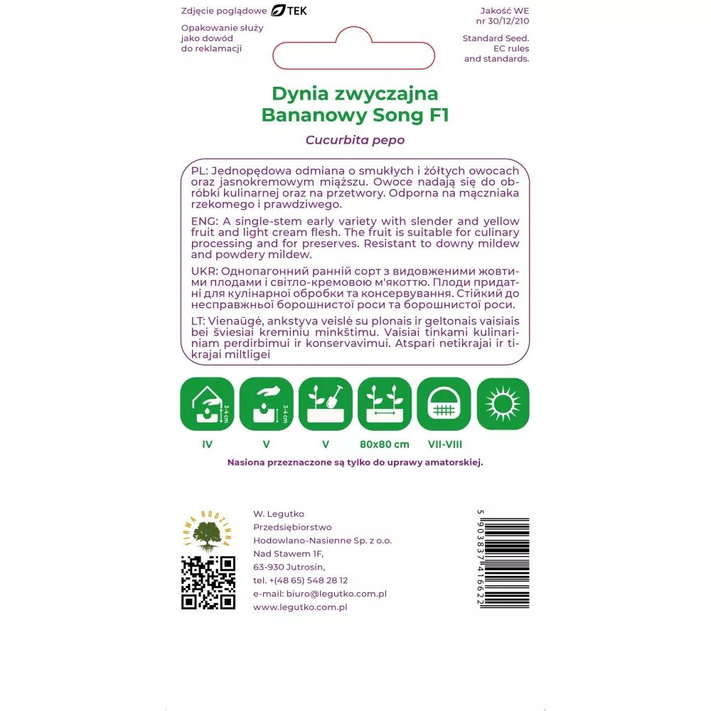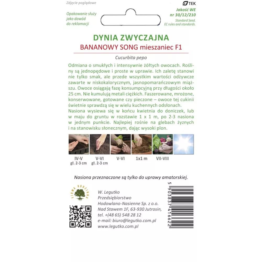 Cukinia Bananowy Song F1 2g Dynia zwyczajna - Cucurbita pepo - Bananowy Song F1 - żółty - 2.00g EAN: 5903837416622
