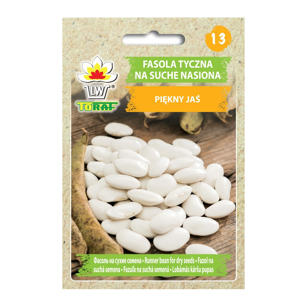 Odmiana tyczna o długim okresie zbioru do uprawy na suche ziarno. Okres wegetacji od siewu do zbioru: 120 dni. Strąki duże, spłaszczone, dojrzewają stopniowo. Nasiona barwy białej, bardzo duże – masa tysiąca nasion przekracza 1000 g. Rośliny dorastają do wysokości 3-4 m i wymagają silnych podpór. Najlepiej udaje się na glebach żyznych, próchnicznych, szybko nagrzewających się. Wysiew nasion od początku V do końca VI na głębokość 6-8cm.