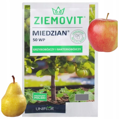 Miedzian 50 WP to środek grzybobójczy do stosowania zapobiegawczego. Chroni amatorskie uprawy upraw owocowych oraz roślin warzywnych przed atakiem patogenów powodujących choroby grzybowe i bakteryjne roślin. Do stosowania w ogrodach działkowych i przydomowych. Występuje w formie proszku do sporządzania zawiesiny wodnej (WP). Wykazuje działanie powierzchniowe - działa na powierzchni opryskanych roślin, tworząc barierę chroniącą rośliny. Środek ekologiczny.