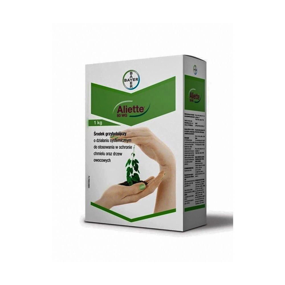 ALIETTE 80 WG jest środkiem grzybobójczym w formie rozpuszczalnych w wodzie granulek do sporządzania zawiesiny wodnej, o działaniu układowym do stosowania zapobiegawczego i interwencyjnego w ochronie chmielu przed mączniakiem rzekomym oraz jabłoni przed zgnilizną pierścieniową podstawy pnia.