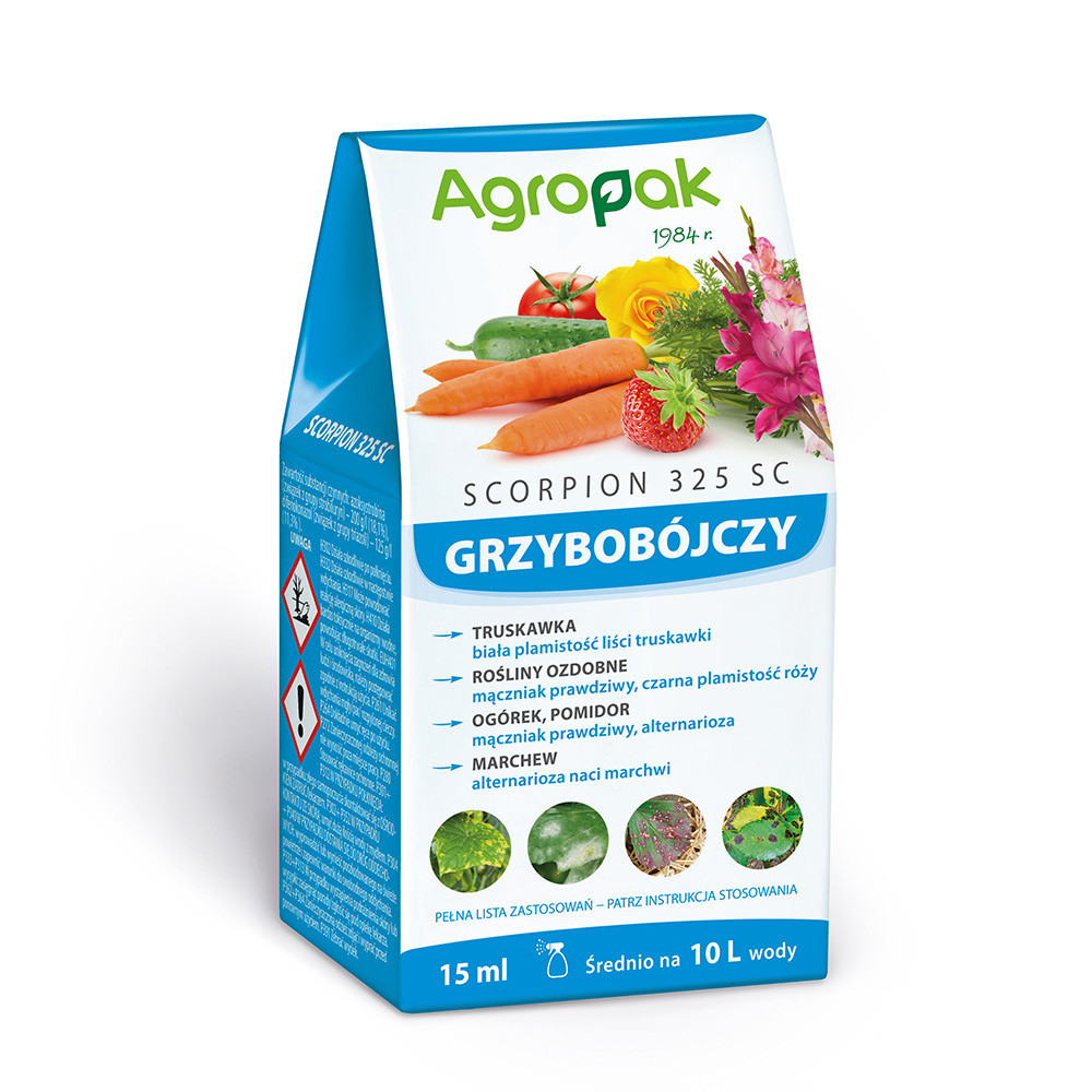 Scorpion 325 SC jest preparatem grzybobójczym do zastosowania zapobiegawczego i interwencyjnego w zwalczaniu chorób powodowanych przez grzyby, w uprawach roślin warzywnych, krzewów owocowych oraz roślin ozdobnych. Jego użycie pozwala na skuteczną ochronę przeciwko takim chorobom jak alternarioza, szara pleśń, rdza, czerń krzyżowych, zgnilizna twardzikowa czy mączniak prawdziwy. Główną zaletą preparatu jest bardzo szybkie przemieszczanie się w roślinie. Substancja czynna zawarta w produkcie hamuje tworzenie ściany komórkowej grzybów, działając przede wszystkim na ograniczenie wzrostu i tworzenie się grzybni. Spowalnia także kiełkowanie zarodników i zatrzymuje infekcję.