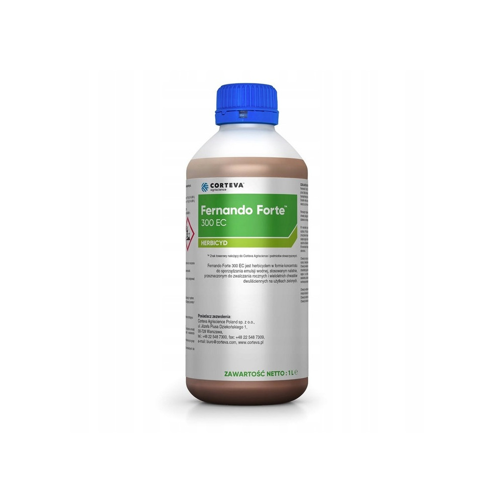 Fernando Forte 300EC jest herbicydem selektywnym w formie koncentratu do sporządzania emulsji wodnej, stosowany nalistnie, przeznaczony do zwalczania rocznych i wieloletnich chwastów dwuliściennych na użytkach zielonych. Środek o działaniu układowym pobierany przez liście chwastów, w mniejszym stopniu przez ich korzenie. Objawy działania na chwasty są widoczne po 5-7 dniach po zabiegu. Zgodnie z klasyfikacją HRAC substancje czynne fluroksypyr i trichlopyr zaliczane są do grupy 0. Fernando Forte 300EC przeznaczony jest do stosowania przy użyciu samobieżnych lub ciągnikowych opryskiwaczy polowych.