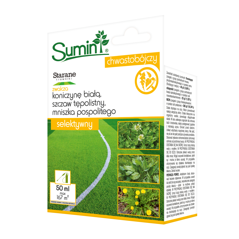 trawnik, boiska sportowe, pola golfowe | 30-40 ml/ 2 100 m / 2-3 l wody | babka lancetowata, babka zwyczajna, gwiazdnica pospolita, koniczyna biała, maruna bezwonna, mniszek pospolity, przytulina czepna, stokrotka polna, niezapominajka polna, szczaw tępolistny | nie dotyczy |