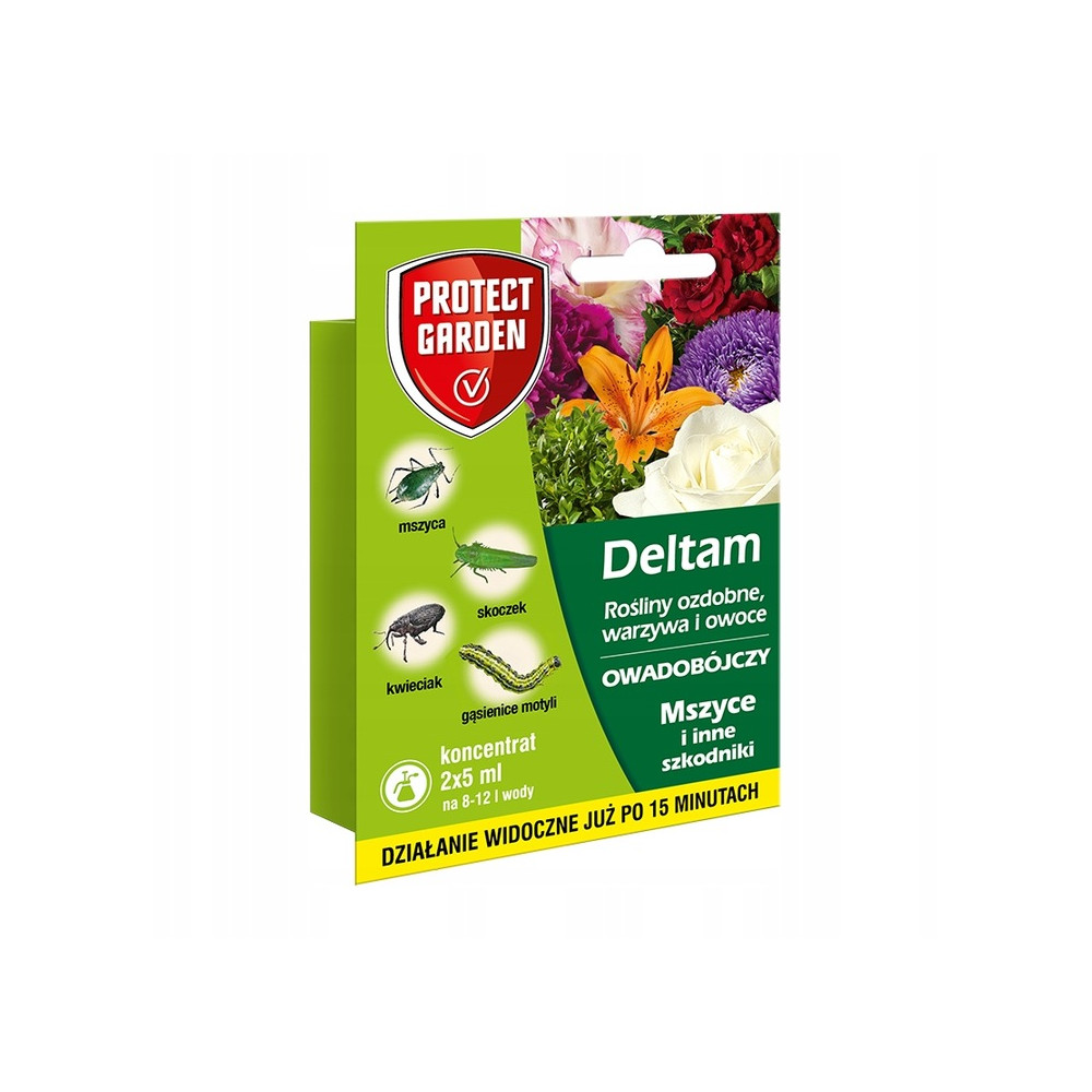 Deltam Ogród zwalcza larwy i chrząszcze stonki ziemniaczanej, kwieciaka jabłkowica i kwieciaka malinowca, bielinka kapustnika i bielinka rzepnika, skoczki, w tym skoczka melisowego i różanego, porazika kocankowego, mszyce, gąsienice motyli.