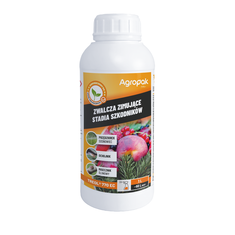 | brzoskwinia | 150 ml środka w 10 L wody / 100 m2 | przędziorek owocowiec (stadia zimujące), mszyca |