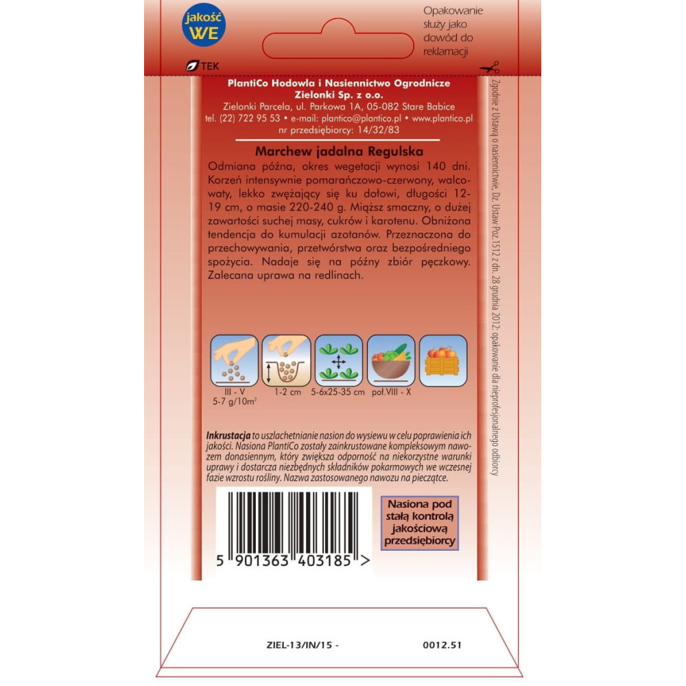 - rozstawa – rzędy co 30-45 cm, odległość między roślinami co 5-6 cm