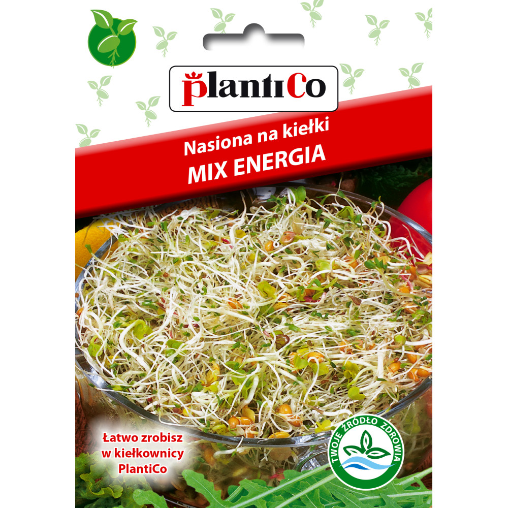 Nasiona na kiełki – Mix Energia 20g PlantiCo Specjalistyczna mieszanka nasion skomponowana z gatunków o działaniu wzmacniającym i energetyzującym. Kiełki te stanowią naturalne wsparcie dla organizmu, dostarczając niezbędnych witamin i minerałów w łatwo przyswajalnej formie. Charakterystyka i działanie: