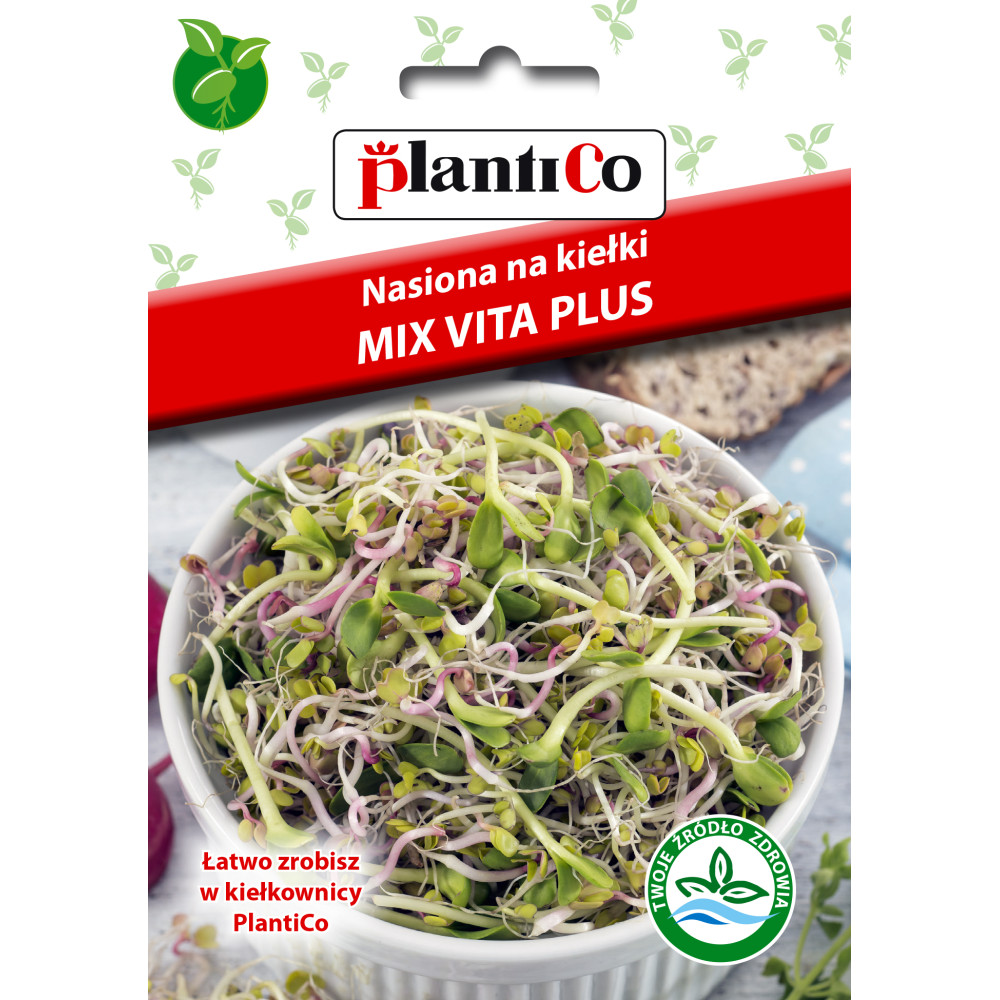 Nasiona na kiełki – Mix Vita Plus 20g PlantiCo Specjalnie skomponowana mieszanka nasion, dobrana pod kątem gatunków wpływających korzystnie na stan skóry, włosów i paznokci. Kiełki stanowią skoncentrowane źródło witamin i minerałów, będąc zdrowym uzupełnieniem codziennej diety przez cały rok. Charakterystyka i zastosowanie: