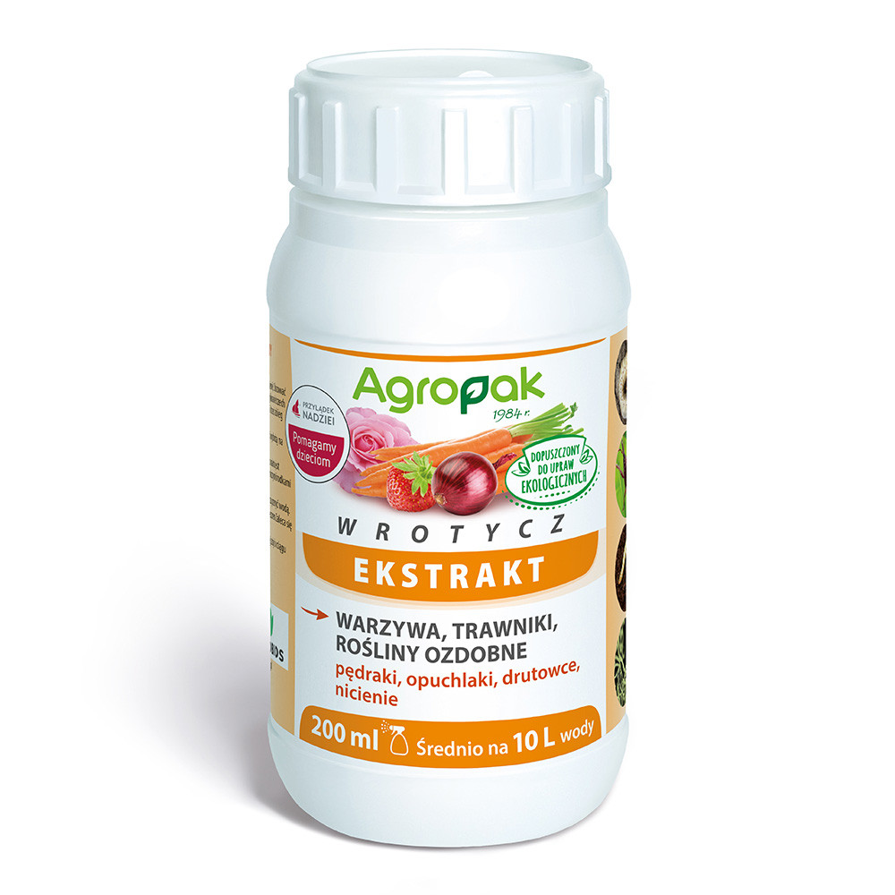 Wrotycz to naturalny preparat mikrobiologiczny do ochrony trawników, upraw roślin ozdobnych, owocowych i warzywnych przed występującymi w glebie szkodnikami, takimi jak pędraki, nicienie, opuchlaki i drutowce. Produkt na bazie ekstraktu z procesu fermentacji wrotyczu z bakteriami lactobacillus i bacillus, stwarza nieatrakcyjne warunki do bytowania szkodników. Swoim charakterystycznym zapachem oraz działaniem składników aktywnych ekstraktu zmusza je do wyjścia na powierzchnie, gdzie giną i są zjadane przez ptactwo. Preparat można stosować w formie oprysku lub podlewania, na wilgotną glebę, w dni pochmurne lub wieczorem, od wiosny do jesieni. Zaleca się wykonanie trzech zabiegów w odstępach 7 – 10 dni. Produkt jest bezpieczny dla ludzi, zwierząt i środowiska. Stanowi doskonałą alternatywę (lub uzupełnienie) konwencjonalnych środków chemicznych. Jest dopuszczony do stosowania w uprawach ekologicznych.