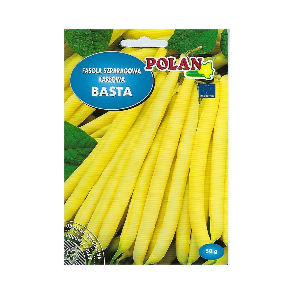 FASOLA SZPARAGOWA KARŁOWA BASTA Charakterystyka i opis: Bardzo wczesna odmiana fasoli szparagowej o krzaczastym, niskim pokroju (karłowa). Tworzy bezwłókniste, proste i gładkie strąki o intensywnie żółtej barwie i długości około 14 cm. Miąższ jest mięsisty, bardzo smaczny, bez tendencji do szybkiego łykowacenia. Odmiana polecana zarówno do bezpośredniego spożycia, jak i do mrożenia oraz konserwowania. Ze względu na wczesność nadaje się do uprawy pod osłonami (folia) oraz w gruncie. Terminy siewu i zbioru: