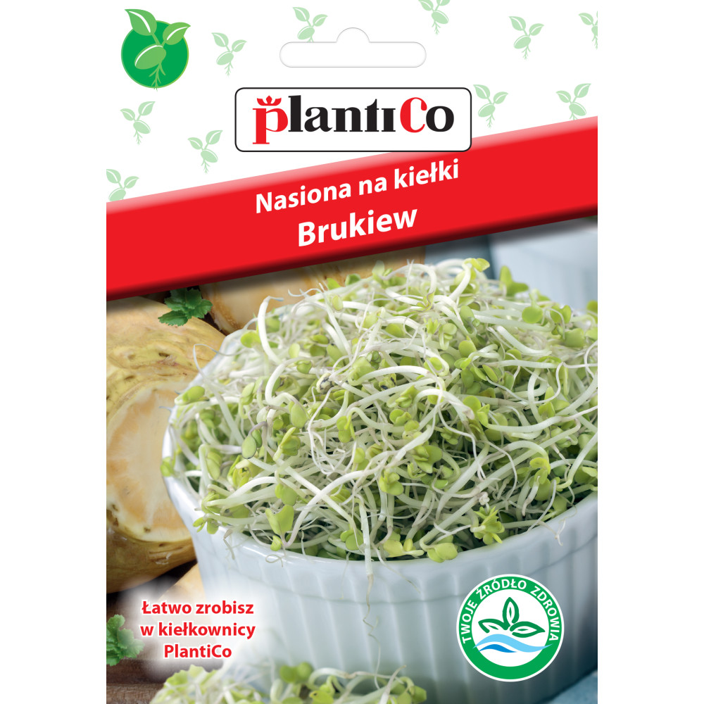 Nasiona na kiełki – Brukiew (PlantiCo, 10g) Kiełki brukwi to propozycja dla osób szukających wyrazistych smaków i naturalnego wsparcia dla organizmu. Charakteryzują się świeżym, lekko pikantnym smakiem przypominającym kalarepę, dzięki czemu stanowią doskonały dodatek do kanapek, sałatek oraz dań serwowanych na ciepło.