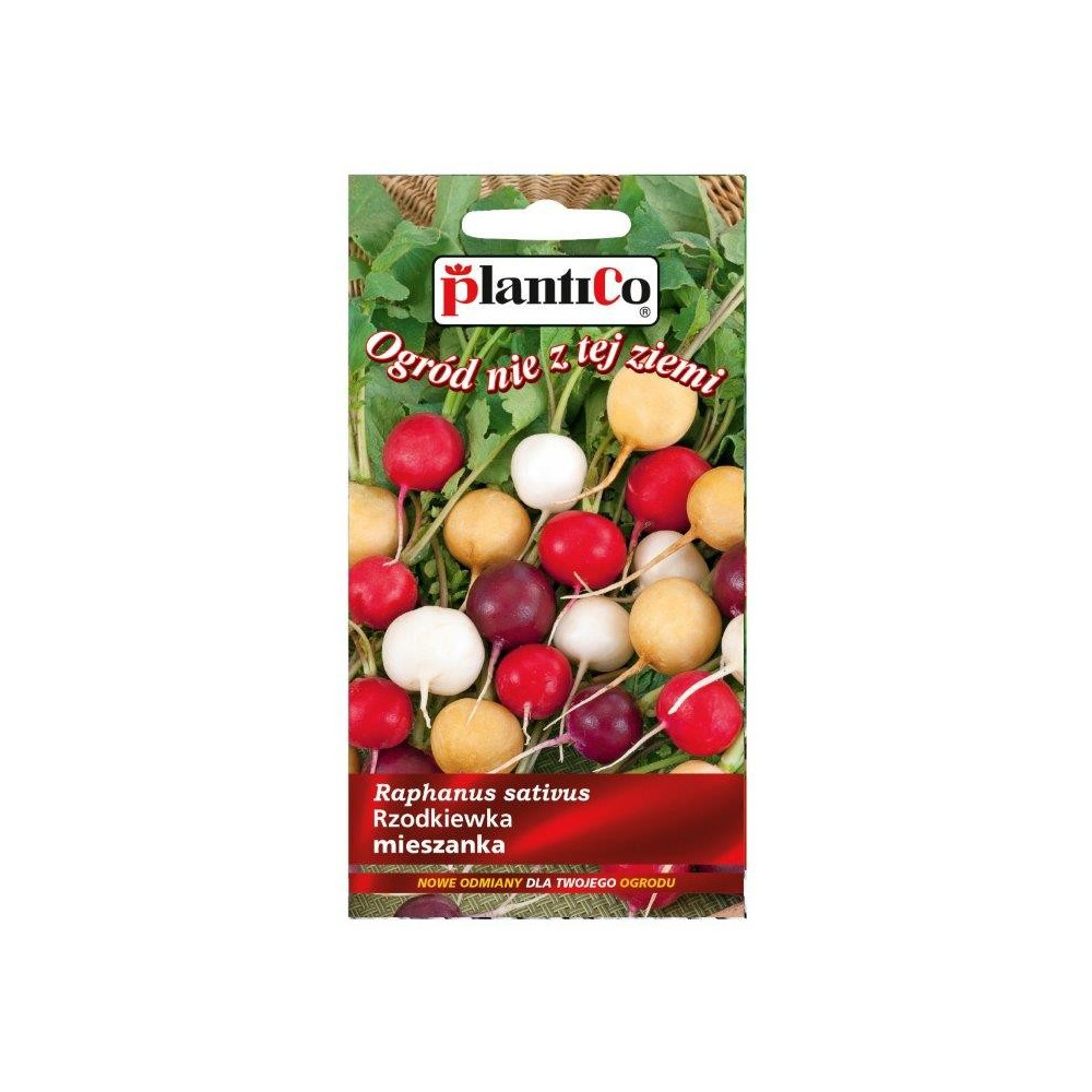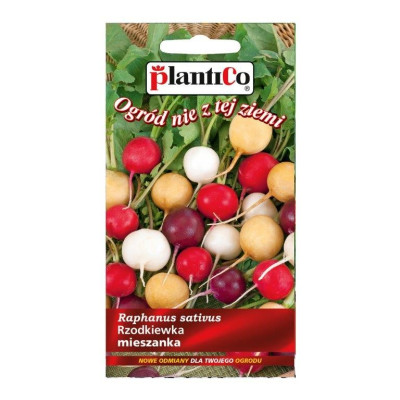 RZODKIEWKA - MIESZANKA KOLOROWYCH ODMIAN Charakterystyka i opis: Mieszanka kilku starannie dobranych odmian rzodkiewki o zróżnicowanej barwie skórki. W skład zestawu wchodzą odmiany o zgrubieniach kulistych w kolorach: białym, żółtym, fioletowym oraz intensywnie karminowym. Wszystkie odmiany charakteryzują się chrupkim, soczystym miąższem o łagodnym lub lekko pikantnym smaku, bez tendencji do parcenia. Mieszanka jest idealna do uprawy amatorskiej, pozwalając na uzyskanie efektownych i kolorowych pęczków rzodkiewek z jednego wysiewu. Terminy siewu i zbioru: