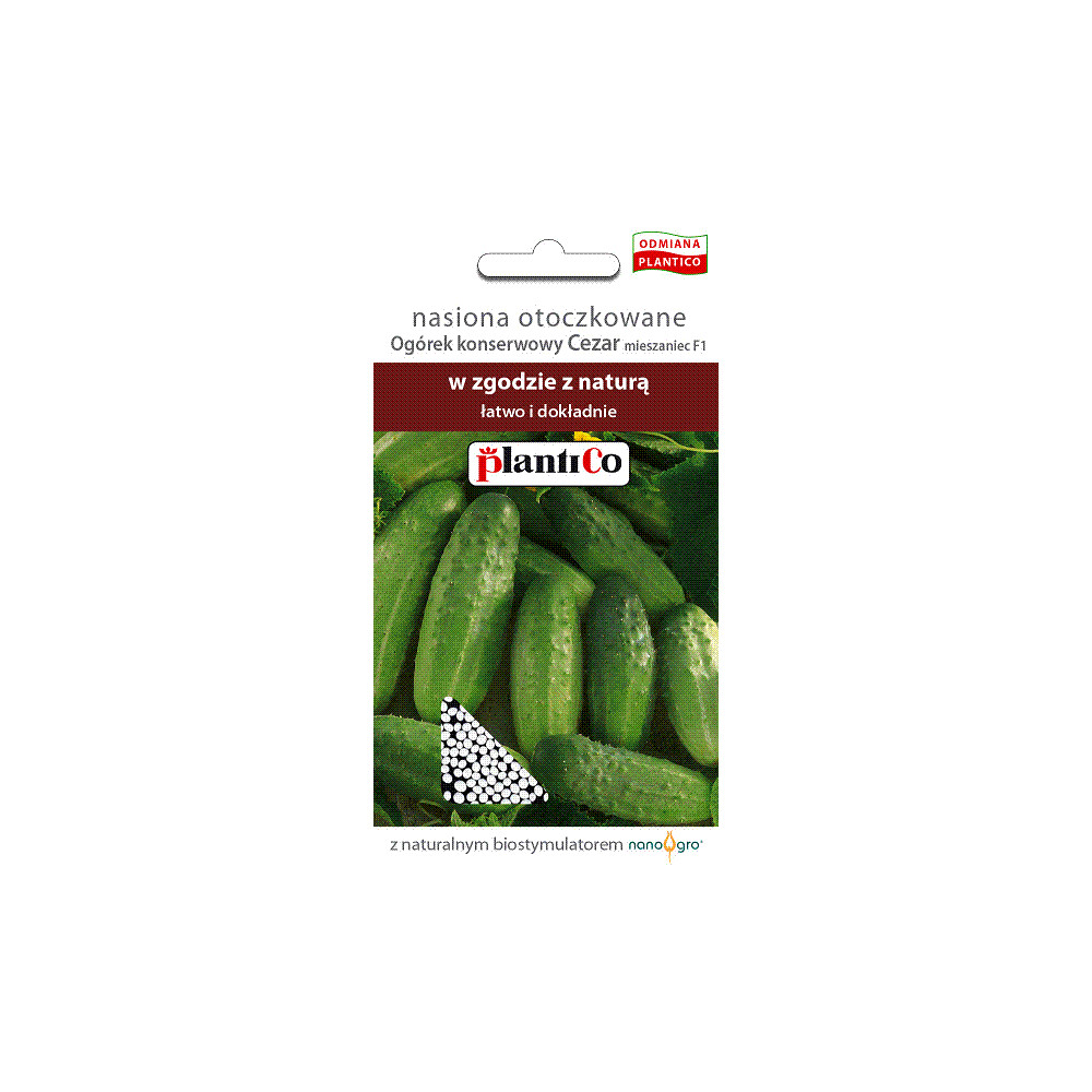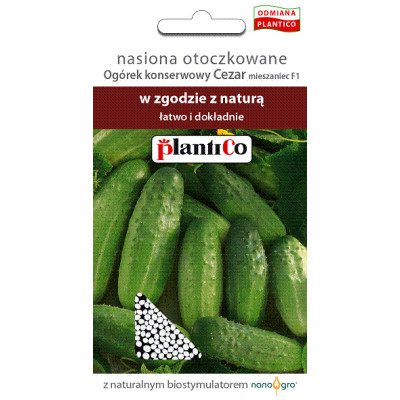 Ogórek konserwowy Cezar F1- odmiana plenna, średniowczesna, grubo-brodawkowa, białokolcowa. Owoce bardzo kształtne, zielone z jasnymi smugami, wyrównane, bez tendencji do żółknięcia. Odporny na mączniaka prawdziwego, parcha dyniowatych i wirusa zwykłej mozaiki ogórków. Polecany do bezpośredniego spożycia, konserwowania i kwaszenia.
