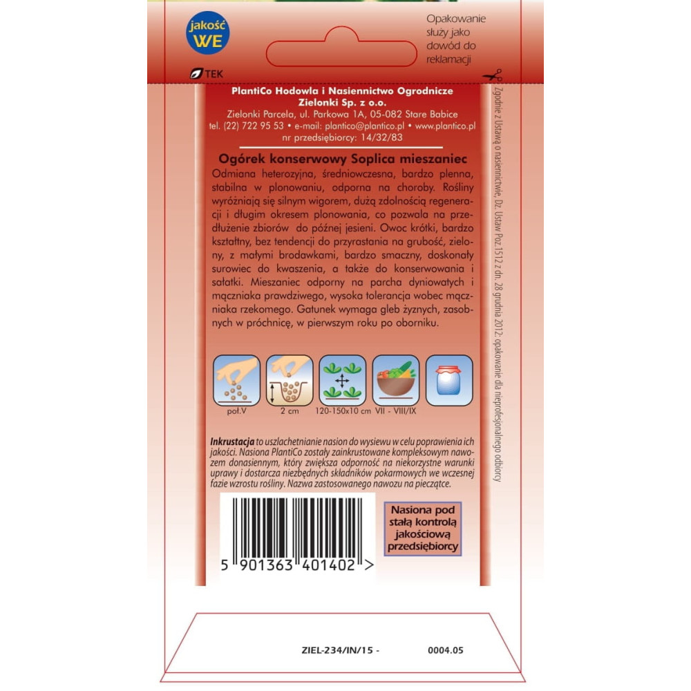 - większość plonu stanowią owoce długości 6-9 cm (ogórek do konserwowania) i 9-12 (kwaszeniak)