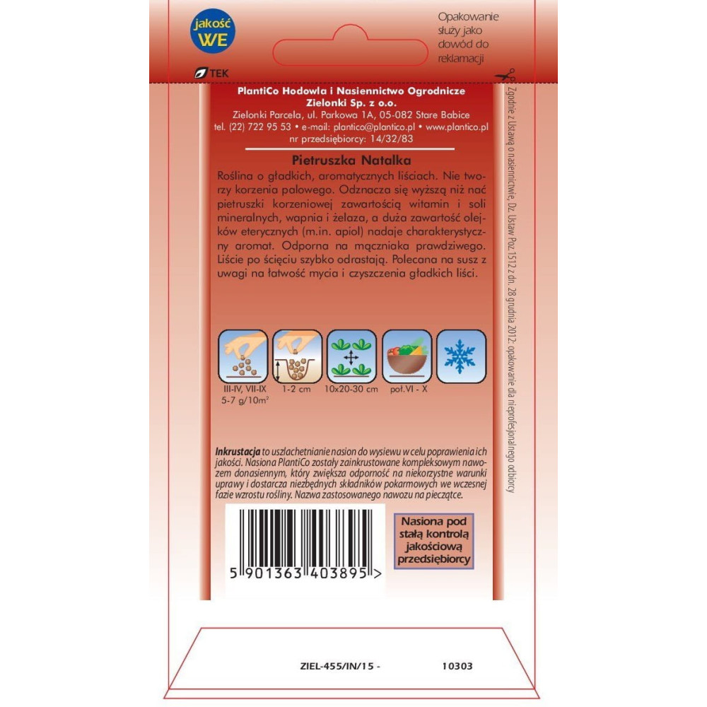 - rozstawa – rzędy co 20-30 cm, wysiew na głębokość 2 cm