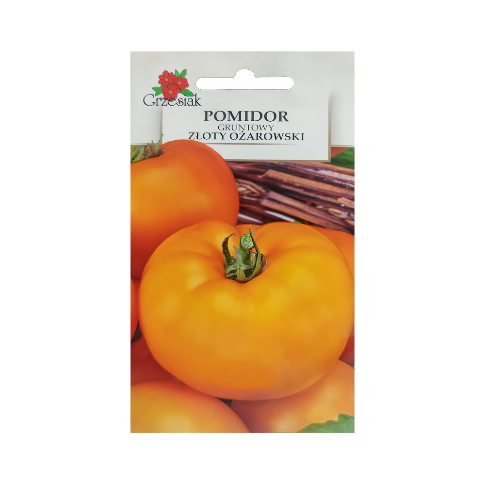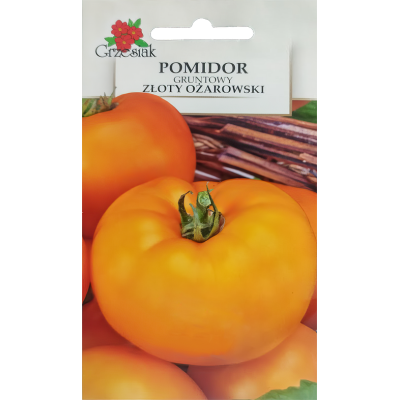 Pomidor Złoty Ożarowski to pierwsza polska odmiana pomidora wysokiego o pomarańczowych owocach. Tworzy wysokie, ciągle rosnące rośliny o zwartym pokroju, wymagające palikowania. Jest to odmiana średnio wczesna, ale niezwykle plenna.