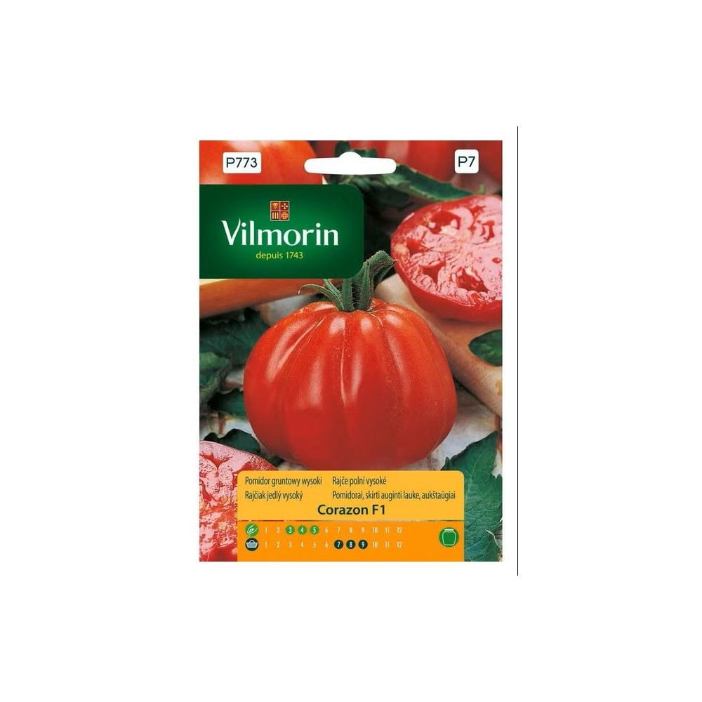 Pomidor Corazon F1 – Nasiona Vilmorin Garden Corazon F1 to jedna z najlepszych odmian pomidora w typie "Bawole Serce" (Coeur de Boeuf). Charakteryzuje się owocami o unikalnym kształcie żebrowanej gruszki lub sakiewki oraz wyjątkowo smacznym, mięsistym miąższem. Jest to odmiana hybrydowa (F1), co zapewnia jej większą żywotność i odporność na choroby. Kluczowe cechy odmiany: