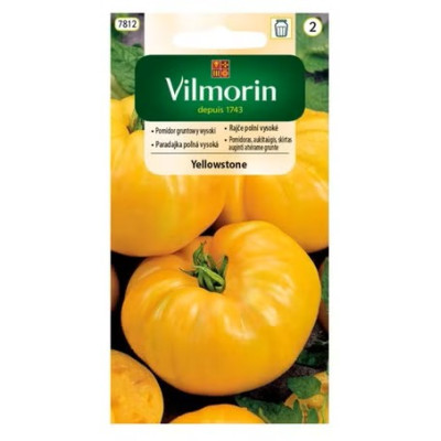 Pomidor Yellowstone – Nasiona Vilmorin Garden Yellowstone to wyjątkowa, wysoka odmiana pomidora gruntowego, która wyróżnia się jaskrawożółtymi, dużymi owocami. Jest to odmiana plenna, idealna dla osób szukających alternatywy dla klasycznych czerwonych pomidorów, łącząca walory dekoracyjne z doskonałym smakiem. Kluczowe cechy odmiany: