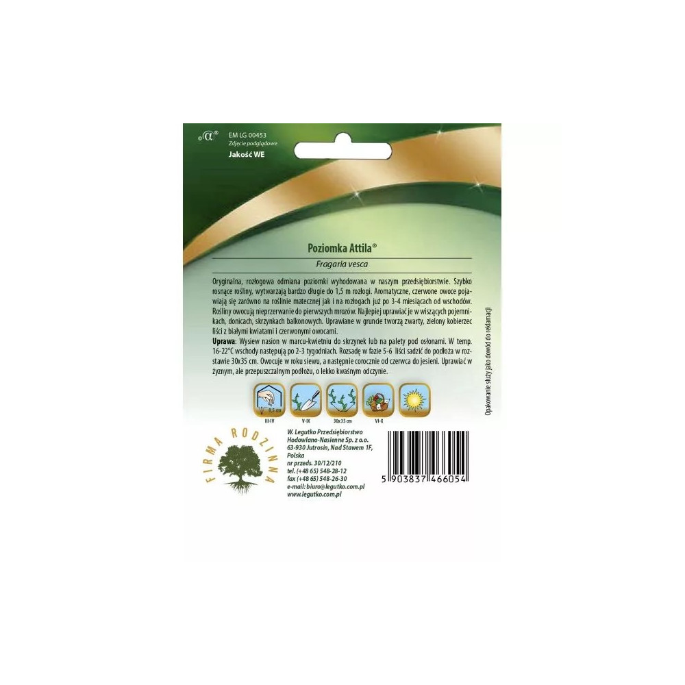 Oryginalna, rozłodygowa odmiana poziomki wyhodowana w naszym przedsiębiorstwie. Szybko rosnące rośliny, wytwarzają bardzo długie do 1,5 m rozłogi. Aromatyczne, czerwone owoce pojawiają się zarówno na roślinie matecznej jak i na rozłogach już po 3-4 miesiącach od wschodów. Rośliny owocują nieprzerwanie do pierwszych mrozów. Najlepiej uprawiać je w wiszących pojemnikach, donicach, skrzynkach balkonowych. Uprawiane w gruncie tworzą zwarty, zielony kobierzec liści z białymi kwiatami i czerwonymi owocami. UPRAWA: wysiew nasion w marcu-kwietniu do skrzynek lub na palety pod osłonami. W temp. 16-22°C wschody następują po 3-4 tygodniach. Rozsadę w fazie 5-6 liści sadzić do podłoża w rozstawie 30x35 cm. Owocuje w roku siewu, a następnie corocznie od czerwca do jesieni. Uprawiać w żyznym podłożu, o lekko kwaśnym odczynie.