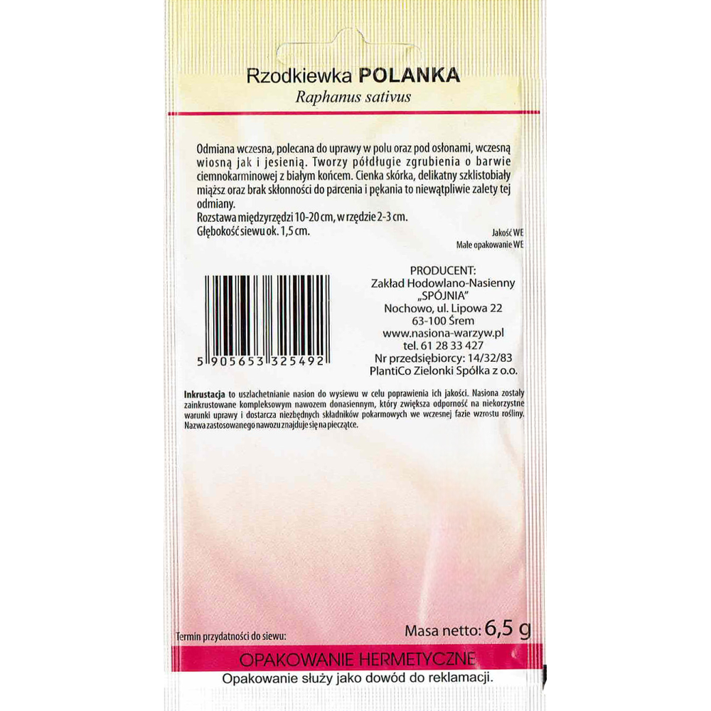 Odmiana wczesna, plenna, przeznaczona do uprawy pod osłonami i w gruncie na zbiór wczesnowiosenny, wiosenny, jesienny i późnozimowy. Tworzy cylindryczne zgrubienia dł. 4-6 cm i masie 8-9 g. Skórka szkarłatna z białym znaczkiem, miąższ biały, szklisty, dość delikatny w smaku, bez skłonności do parcenia. Może być uprawiana jako przed- i poplon. Gramatura: 100g