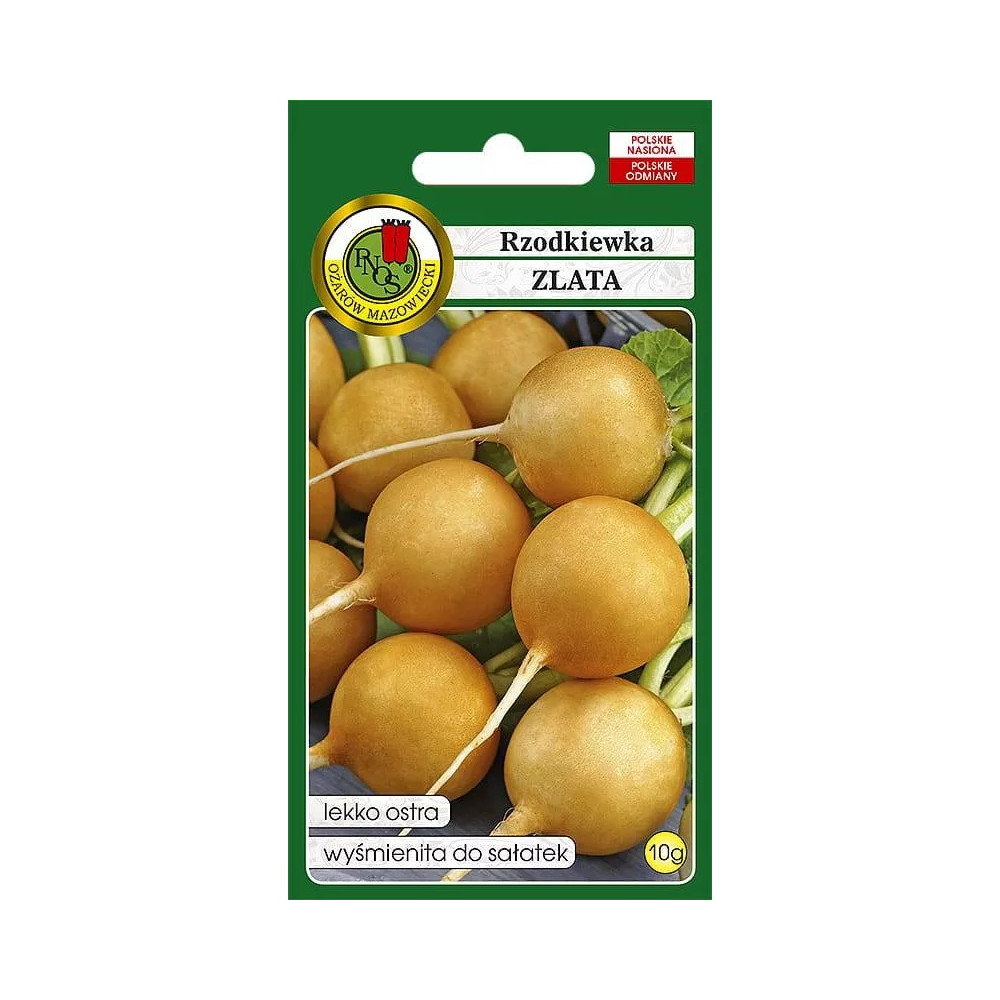 Rzodkiewka Zlata to wyjątkowo amatorska odmiana o oryginalnej złoto-żółtej barwie skórki. Charakteryzuje się bardzo dobrą jakością miąższu, który jest soczysty, biały, nie parciejący, bardzo smaczny. Zgrubienia korzeniowe duże, kuliste lub lekko owalne. Może być uprawiana w polu od wczesnej wiosny do późnej jesieni.