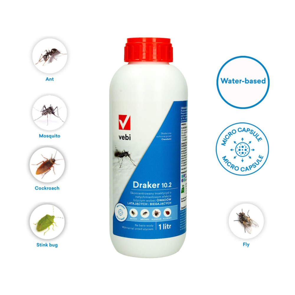 Preparat w postaci koncentratu mikrokapsułkowanej emulsji. Środek do zwalczania owadów latających i biegających takich jak: komary, osy, mrówki, karaczany, pchły i kleszcze.