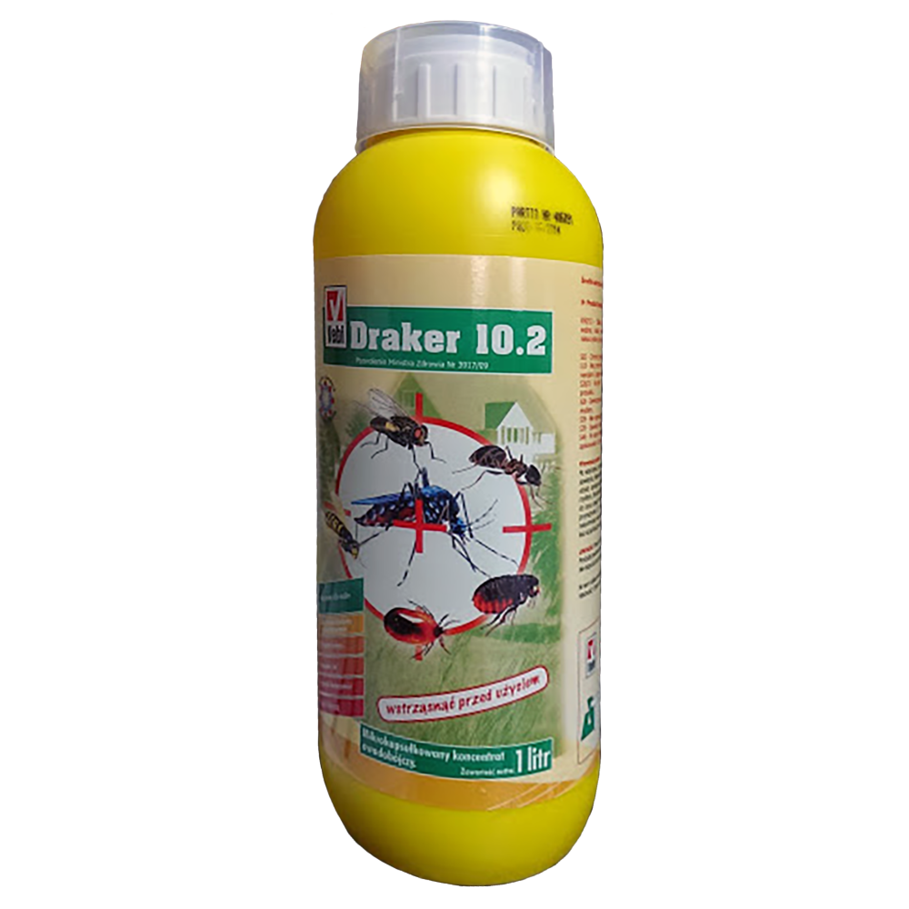 W produkcie Draker 10.2 tetrametryna oraz część butotlenku piperonylu (PBO) występuje w postaci wolnej i działa na owady natychmiastowo, natomiast cypermetryna oraz pozostała część PBO - w postaci mikrokapsułek. Zamknięcie substancji aktywnej w mikrokapsułce zapewnia jej ochronę przed warunkami zewnętrznymi takimi jak światło, temperatura i wilgoć oraz pozwala na kontrolowane, powolne uwalnianie do środowiska. Nie posiada zapachu. Produkt cechuje się szybkim efektem bójczym oraz długotrwałą skutecznością wynikającą z efektu zalegania. Ze względu na efekt rezydualny, skuteczność produktu zachowana jest przez przynajmniej 14 dni.