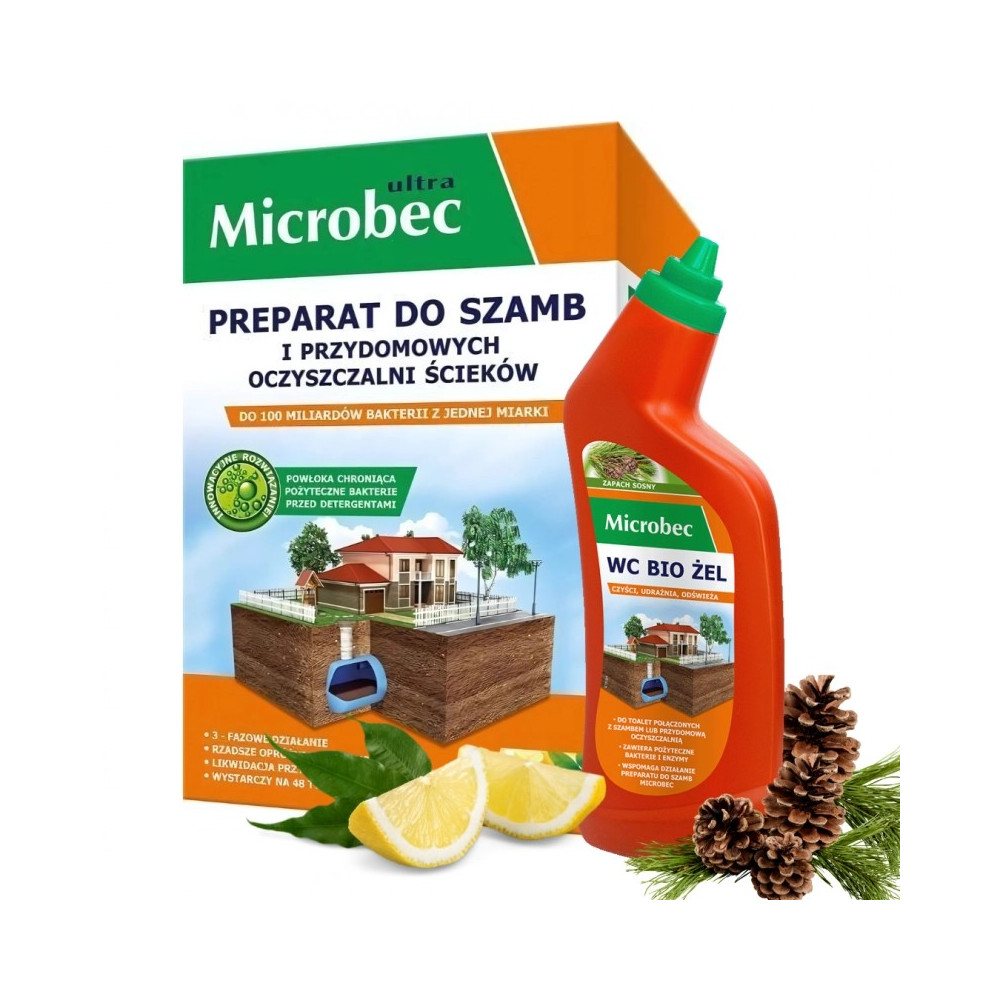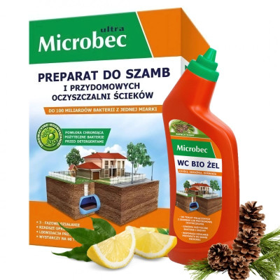 Preparat do szamb i przydomowych oczyszczalni ścieków Microbec Ultra cytryna 1 kg + WC BIO ŻEL Microbec 500 ml