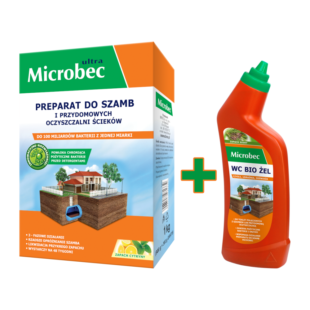 Mikrobiologiczny preparat enzymatyczny najnowszej generacji przeznaczony do biodegradacji zawartości szamba. Systematyczne stosowanie Microbec’u zmniejsza częstotliwość opróżniania szamba, wspomaga pracę przydomowych oczyszczalni ścieków, usuwa nieprzyjemny zapach i udrażnia system instalacji sanitarnej.
