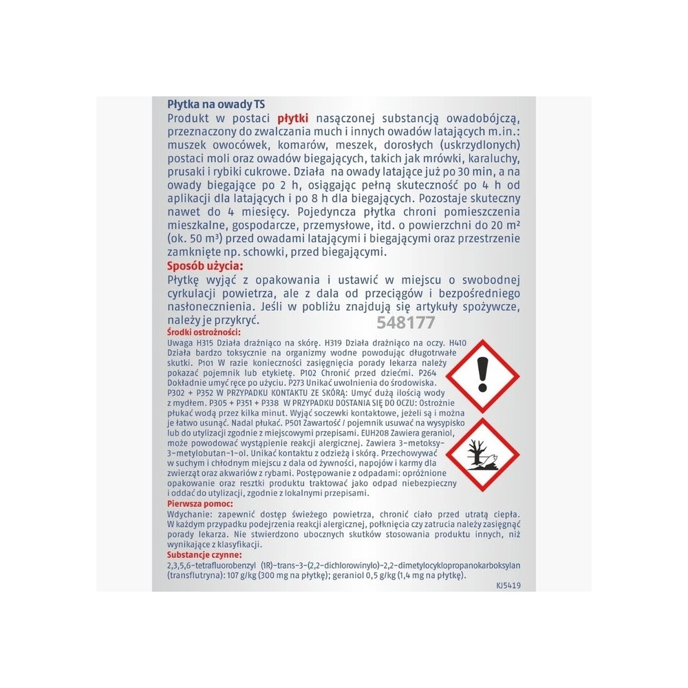 Płytka nasączona parującą substancją owadobójczą, przeznaczona do zwalczania much i innych owadów latających (m.in.: muszek owocówek, komarów, meszek, dorosłych postaci moli) oraz owadów biegających, (mrówek, karaluchów, prusaków i rybików cukrowych).
