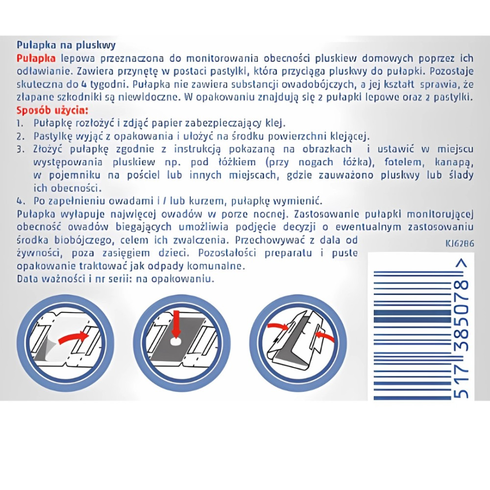 - Łatwość użycia: Pułapka jest prosta w użyciu. Wystarczy umieścić ją w miejscach, gdzie pluskwy mogą się pojawić, takich jak sypialnie, kanapy, materace, dywany, czy inne ukryte zakamarki.