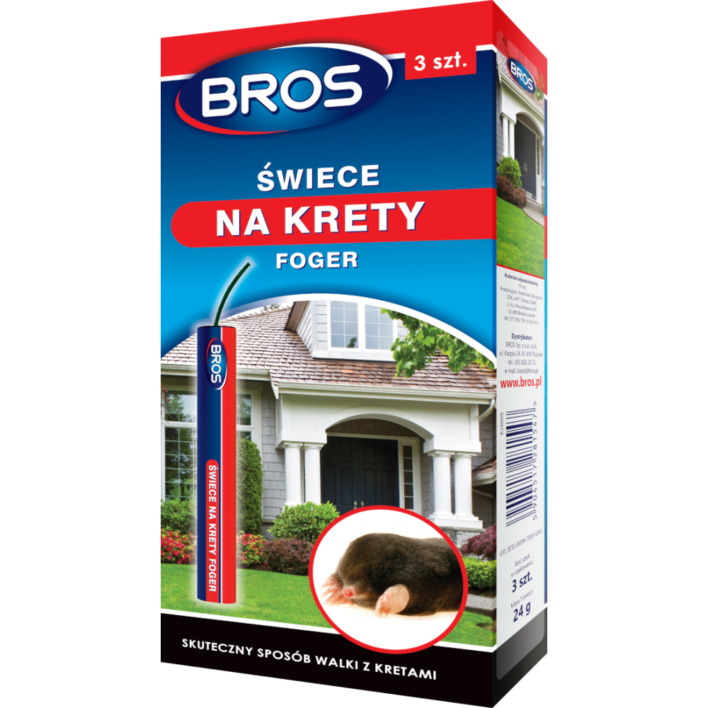 Środek na krety i gryzonie polne w formie świecy o działaniu gazowym. Świece przeznaczone do odstraszania kretów na ziemnych konstrukcjach hydrotechnicznych i obiektach sportowych oraz trawiastych lotniskach.