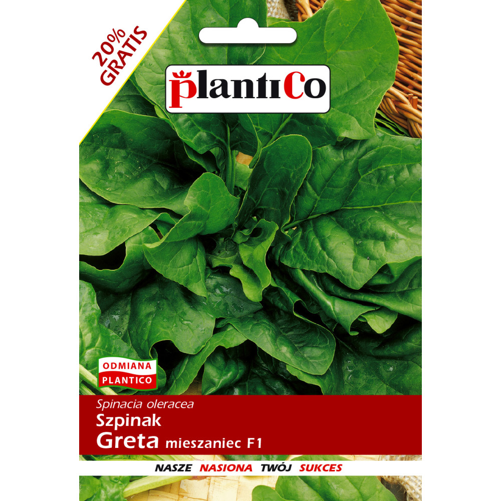 Szpinak Greta F1 (PlantiCo, 12g) Odmiana Greta F1 to wysokoplenny mieszaniec typu żeńskiego, który wyróżnia się dużą siłą wzrostu i doskonałymi walorami smakowymi. Jest to odmiana późna, idealna dla osób poszukujących szpinaku o długim okresie przydatności do zbioru, który nie wybija szybko w pędy kwiatostanowe. Najważniejsze cechy produktu: