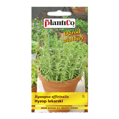 HYZOP LEKARSKI Roślina wieloletnia - bylina. Surowcem jest ziele zebrane w czasie kwitnienia, dwa razy w okresie wegetacji. Zapobiega nadmiernemu poceniu się, działa wzmacniająco i bakteriobójczo. Przyspiesza trawienie i pobudza apetyt. Jest używany w kuchni dietetycznej, jako dodatek do pieczeni, jaj faszerowanych, kiełbas, zrazów, zupy fasolowej i ziemniaczanej oraz marynat. Wymaga południowego i osłoniętego stanowiska, gleby lekkiej, wapiennej. Gramatura: 0,2g.